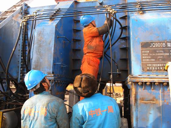 大年三十,山東濟南到德州一帶仍是寒風刺骨,分布在陵縣、禹城南、禹城北、齊河縣的四個架梁工地上,卻是一番熱火朝天的大干景象。三個架梁隊在年三十上午共完成了3孔箱梁架設,下午各隊停止了架梁,員工休息。經過初一、初二休息后,初三各隊生產工作恢復正常,當天,架梁一隊開始了架橋機機臂拼裝;二隊單班架梁1孔;三隊單班架梁2孔;在08年11月新錄用員工達到隊伍的80%以上,操作技能普遍偏低和京滬箱梁梁面變窄并設置六面坡,造成運梁車通過能力差及天氣寒冷等不利因素影響下,正月初五架梁二隊和三隊三班作業人員共架梁5孔,架梁成績穩步提升。截止正月初八,共完成架梁86孔。