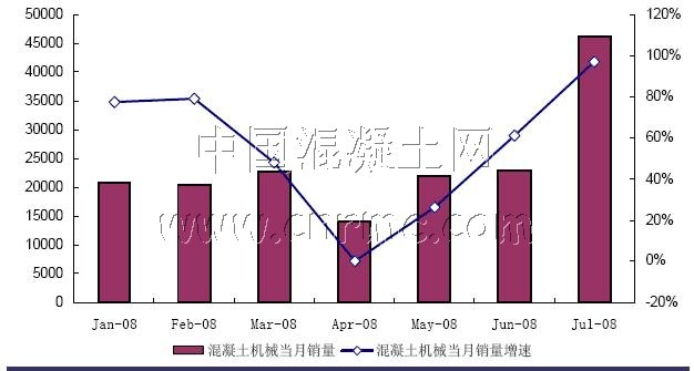 混凝土機(jī)械08年1-7月份月度銷量情況