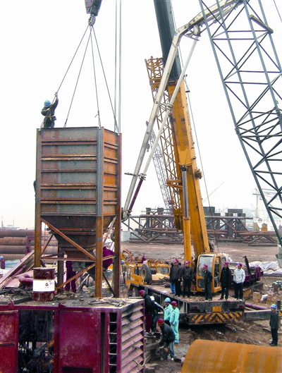 2月15日,由中鐵大橋局承建的武漢二七長江大橋南岸6號墩第一根直徑2.5米鉆孔樁開始進行水下混凝土灌注,標志著該橋地下隱蔽工程全面展開。6號墩位于5號主塔墩南側灘地,共有8根直徑2.5米鉆孔樁,樁長60余米,此次灌注的是6號孔,約300立方混凝土。