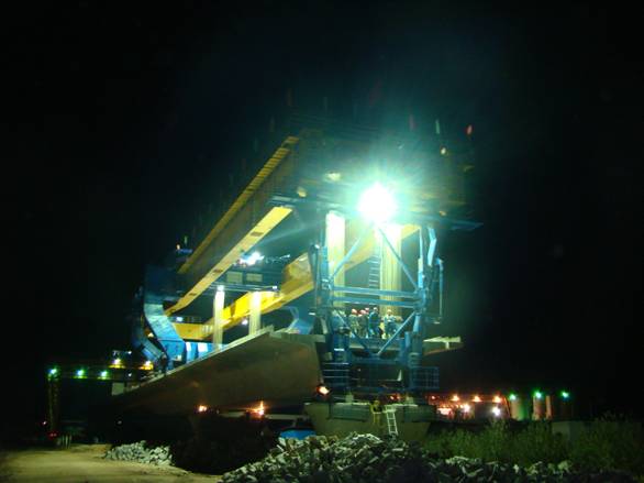 由于東北地區(qū)冬季氣候寒冷,風(fēng)力經(jīng)常在6級(jí)以上,因此項(xiàng)目部在元月進(jìn)入冬休整備期。在冬休期間,項(xiàng)目部留守人員堅(jiān)持按照設(shè)備保養(yǎng)計(jì)劃定時(shí)對設(shè)備進(jìn)行保養(yǎng)和檢測,同時(shí)利用這段時(shí)間對運(yùn)梁車進(jìn)行了維修。今年冬季大連地區(qū)天氣情況良好,中鐵一局局指揮部要求項(xiàng)目提前開工。項(xiàng)目部各部門、班組人員接到領(lǐng)導(dǎo)通知后迅速反應(yīng),通知各崗位人員提前到位,真正發(fā)揚(yáng)了“招之即來,來之即戰(zhàn),戰(zhàn)之能勝”的風(fēng)格。在搶工人手緊張的同時(shí),項(xiàng)目部仍然時(shí)刻將安全放在首位,對新進(jìn)勞務(wù)工進(jìn)行了為期7天的脫產(chǎn)崗前培訓(xùn)。培訓(xùn)涉及安全生產(chǎn)、項(xiàng)目管理、施工技術(shù)等方面,所有人員必須合格后方能上崗。對冬休人員還進(jìn)行了崗前安全再教育。項(xiàng)目部員工斗嚴(yán)寒、戰(zhàn)風(fēng)雪,在及其艱苦的環(huán)境下對設(shè)備進(jìn)行運(yùn)轉(zhuǎn)調(diào)試,同時(shí)克服了架橋機(jī)新更換的二、三號(hào)柱減速機(jī)故障造成的工期滯后。工班人員分成兩班日夜作業(yè),項(xiàng)目領(lǐng)導(dǎo)輪流值班,積極配合武研院進(jìn)行搶修,成功完成了永清公路特大橋第三孔箱梁的架設(shè)工作,打開了哈大架梁項(xiàng)目部2009年攻堅(jiān)之戰(zhàn)的序幕。