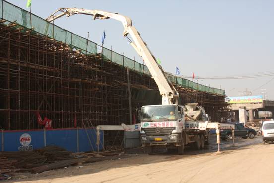 由中國鐵建中鐵十五局集團公司西南指揮部承擔施工的昆明市改擴建工程南二環高架橋進入澆筑階段。從3月1日晚20:30開始澆筑,預計澆筑時間為30~40小時。