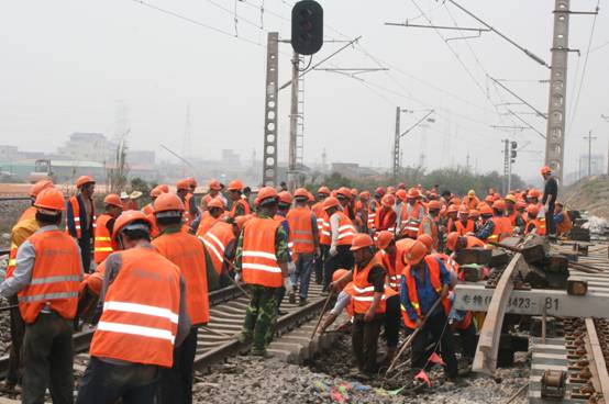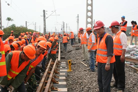 因此,東孚鋪軌基地建場時間緊、任務重。3月19日,為了盡快打開基地路料運輸通道,加快基地建設進度。新運工成公司黨委副書記、紀委書記、福廈廈深鋪軌項目部項目經理鄭樹祥,親自擔任撥接施工總指揮,精心組織施工,確保既有現撥接安全正點。上午11:12時,慢行命令下達, 15:15時,廈門至景德鎮的客車徐徐通過。中鐵一局參建員工在3個小時內成功插入2組道岔,在營業線撥接施工并能安全正點開通線路,打開進料通道。得到南昌鐵路局工務、電務等配合單位的一致好評。