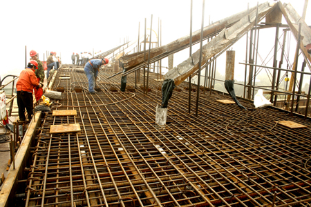 由于多種原因,南邊跨施工一直處于被動局面。開展“誠信杯”競賽活動以來,湖南路橋項目部積極爭取指揮部的大力支持和指導,經過與監理、檢測、監控等單位的共同努力,施工和技術管理人員攻難克堅,嚴格執行施工工藝,認真解決施工難點,于3月21日下午開盤,經過11個小時連續施工,順利地完成首段箱梁澆筑,為荊岳大橋主橋南邊跨的全面施工開創了新的局面,預示著南邊跨的施工高潮即將到來。