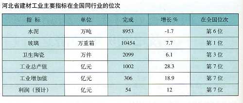 河北省建材工業(yè)主要指標在全國同行業(yè)的位次
