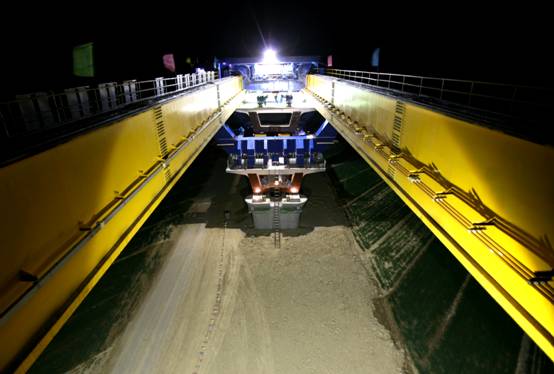 2009年以來,承擔京滬高速鐵路土建二標段德禹特大橋、禹濟特大橋和黃河特大橋共計2476孔箱梁架設任務的新運公司京滬高速鐵路架梁項目部,認真落實鐵道部 “六個確保”年度目標和全線各節點工期要求,廣泛開展了“高揚黨旗建高鐵,標準高效創一流”主題活動和“比日產,創高效,搶進度,奪全勝”勞動競賽活動,多措并舉,四點同架,不斷掀起架梁高潮,使架梁進度以平均日架10-12孔的高速度穩步向前推進。并在施工中先后創出了單機日架整孔箱梁6孔和四機六班日架整孔箱梁16孔的高產記錄。截止4月7日18時,該項目部已順利完成整孔箱梁架設455孔。