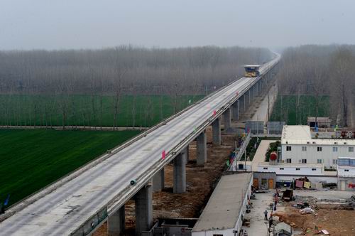 設計時速350公里的京滬高速鐵路,是中國自主建設的世界上一次建成線路最長、標準最高的高速鐵路。全長1318公里的線路中,橋梁工程約占全線總里程的80%。這不僅可以有效減少建設用地,而且還能減少與公路的交叉道口,以保障時速達350公里的高速鐵路行車安全。京滬高速鐵路全線共需生產長32米、重達900噸的無砟箱型橋梁近3萬孔。它的架設,是京滬高速鐵路土建施工的關鍵性工程。