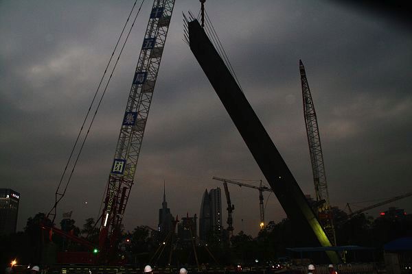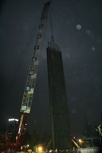 “起吊!”隨著現場指揮員一聲令下,4月20日下午18:38分,中國鐵建中鐵十五局集團公司廣深港客運專線ZH—4標福田車站第一幅35m地下連續墻鋼筋籠緩緩起吊并順利沉槽。該鋼筋籠長為35m,寬為5.5m,兩側設工字止水鋼板,重約60t,是截至目前深圳市整幅起吊的最大鋼筋籠。