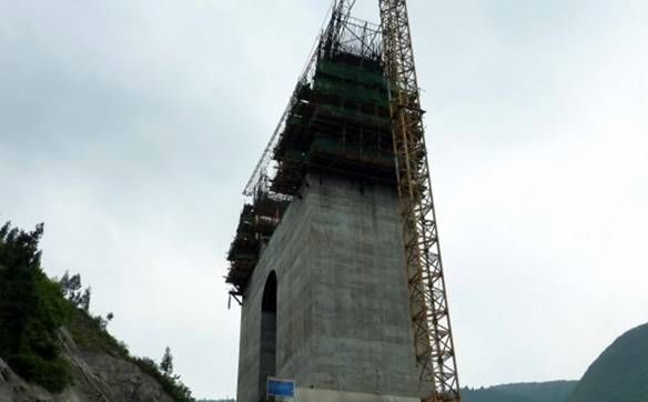 巫奉項(xiàng)目何家坪特大橋是巫奉高速公路控制性工程之一。主墩7號(hào)墩承臺(tái)以上部分高151.2米,塔墩采用國(guó)內(nèi)先進(jìn)的爬模施工技術(shù)。該技術(shù)采用德國(guó)進(jìn)口維莎板、木工字梁、液壓千斤頂施工,具有重量輕、操作簡(jiǎn)便、安全可靠等優(yōu)點(diǎn)。該大橋是橋梁公司繼忠縣長(zhǎng)江大橋、豐城劍邑大橋之后第三次采用爬模技術(shù)施工的一項(xiàng)工程。
