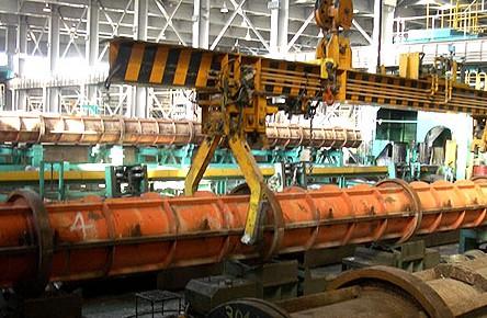 所以,他們年產量150萬米的預應力混凝土管樁生產企業只有50人~60人。生產流水線的機械化程度很高,可以做到橫向縱向自動移動(見圖)。