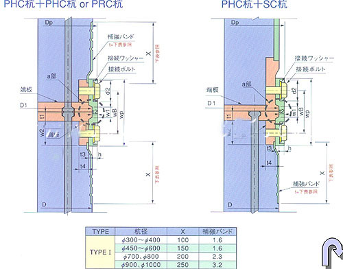 為了發揮管樁的最大的抗彎性能,現在日本用組合管樁也比較普遍,所以鋼管混凝土管樁SC也普遍的應用。因為將鋼板代替了鋼筋放在最外面,從結構上是最合理,抗彎性能最好。(見圖)