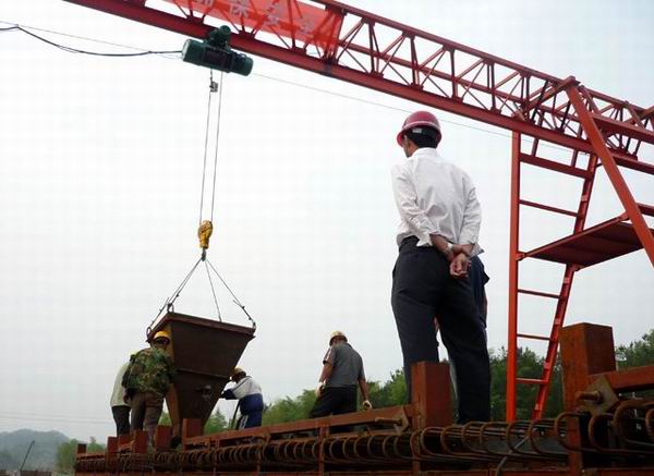 5月17日17時16分,在喜慶的鞭炮聲中,隨著中國鐵建中鐵十五局集團五公司績黃項目第一斗混凝土緩緩注入梁模,標(biāo)志著該項目第一片后張法預(yù)應(yīng)力箱梁正式投產(chǎn)。