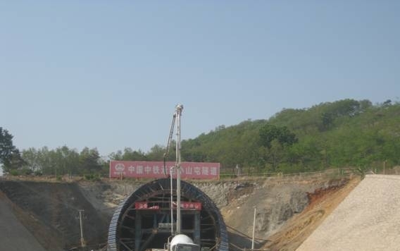 小山屯隧道全長761米,位于大連市金州區張家屯村與南羅家屯村之間,該隧道進口地形與線路基本正交,出口與線路呈45度斜交,進、出口采用帽檐式洞門、復合式襯砌,地質巖性為石英砂巖與泥巖互層,呈碎石鑲嵌結構,軟硬不均。隧道于2007年11月15日開工,2008年3月10日正式進洞,正洞于2009年2月16日正式貫通,3月18日完成二襯施工,4月12日完成出口端洞門澆注,5月18日,隧道主體全部竣工。小山屯隧道因其圍巖破碎,巖層自穩能力差,施工難度特別大。