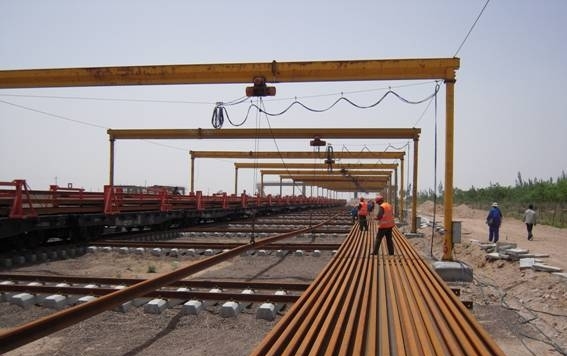 新運公司承建的新建太中銀鐵路鋪架施工,其中正線鋪軌568.548公里,架橋1662孔,并一次性鋪設60KM/M無縫線路,按照施工組織設計,在平吉堡和中寧東兩個鋪架基地建立了500米長軌存放區。為了加快工期,滿足無縫線路換鋪施工進度要求,新運公司精心組織、合理安排,克服人員少、機械設備故障多、倒運頻繁等困難,僅用15天時間,把中寧東鋪架基地群吊設備安全移往紅寺堡長軌存放區,并于5月28日開始投產使用。