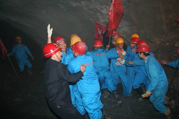中鐵一局集團(tuán)公司總經(jīng)理和民鎖5月28日,在中國傳統(tǒng)的端午節(jié),專程從西安趕到新蜀河隧道貫通現(xiàn)場祝賀,并參加襄渝二線指揮部召開的貫通表彰總結(jié)大會。西安鐵路局襄渝二線鐵路指揮部發(fā)來賀電祝賀,并獎(jiǎng)勵(lì)50萬元。