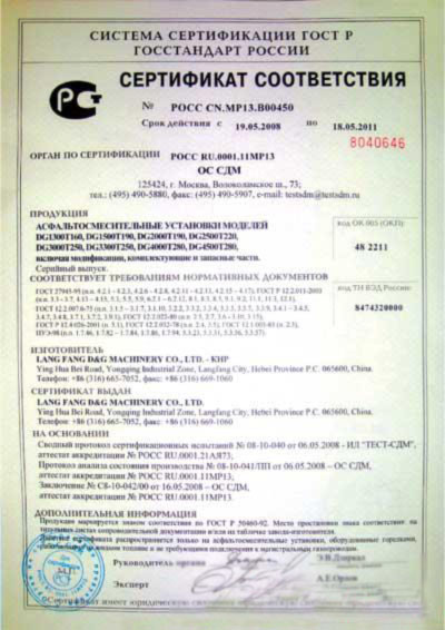 百萊瑪自有品牌德基瀝青攪拌設備獲得俄羅斯聯邦機械產品的PCT認證,標志著產品符合俄羅斯聯邦標準,可順利進入俄羅斯市場。 俄羅斯聯邦機械產品認證:證書號:POCC. RU.0001.11MP13