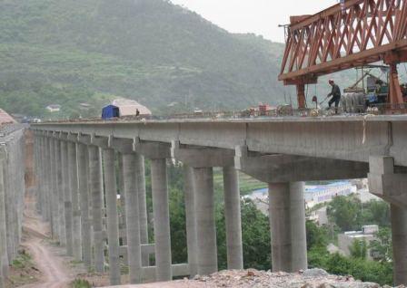 5月29日上午,中交第一公路工程局五公司雅瀘項(xiàng)目爛田溝大橋完成右幅T梁架設(shè)。爛田溝大橋位于雅瀘C8項(xiàng)目的起點(diǎn)。該橋上部結(jié)構(gòu)采用預(yù)應(yīng)力砼簡支T形梁,左橋四聯(lián),右橋五聯(lián);下部結(jié)構(gòu)采用半幅橋?qū)掚p柱式鋼筋砼圓形橋墩、挖孔樁基。經(jīng)過40天的不懈努力,右幅115片T梁順利架設(shè)完成。
