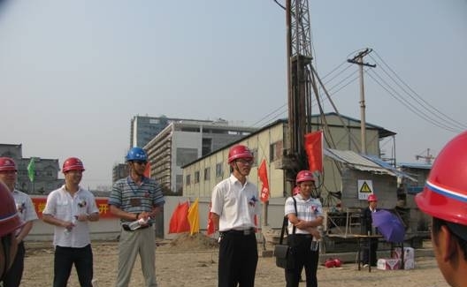 杭州地鐵1號線九堡東站西端地下工程在6月4日下午15:18分,舉行了簡單而又隆重的開工典禮,市質檢站科長史文杰、地鐵公司工程部科長肖懷全、業主代表葛俊、質量安全部成廣謀、鐵一院設計代表曹振剛、鐵一院總監方新安、總監代表劉偉等應邀參加了開工典禮。