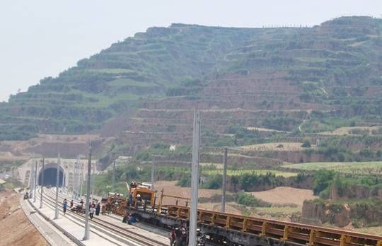 6月14日,鄭西客專鋪軌順利通過該線最長的隧道——秦東隧道(全長7686米)雙線,進入河南省境內。