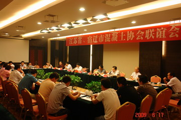 由三一重工江蘇分公司承辦的“江蘇省與宿遷市混凝土協會聯誼會”于2009年6月17日在宿遷市楓華麗致酒店舉行。江蘇省建筑鋼結構混凝土協會副秘書長程祥平,宿遷市散裝水泥辦公室主任陸軍,書記賈建強,宿遷市商品混凝土協會會長王聿懂,秘書長陸裕龍,原江蘇省建筑鋼結構混凝土協會秘書長盧錫鴻,三一重工江蘇分公司總經理鄧富義,副總經理胡放輝及宿遷市協會18家混凝土會員企業的主要負責人共34人出席了會議。