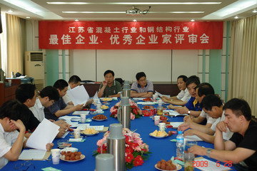 根據協會年度計劃安排,2007-2008年度江蘇省鋼結構行業和混凝土行業最佳企業、優秀企業家評審會于2009年6月28日在常州建筑工程材料供應有限公司召開。江蘇省建筑鋼結構混凝土協會會長顧炎晴,常務副會長兼秘書長劉加平,協會副會長、江蘇省建設廳計劃財務處處長唐世海,副會長吳小明、徐正風、沙朝暉、劉修民、張震東、湯文峰、房志榮、張厚仁、邵昊等16名評審委員出席了會議。
