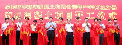 總投資5000萬元的環宇預拌混凝土項目建成后,每年可生產60萬立方米商品混凝土,為加快來賓市的城市建設,加快來賓工業區基礎設施建設創造良好的條件。