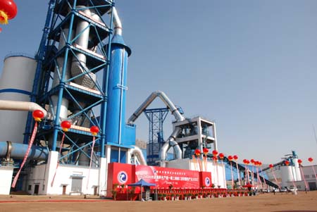 7月18日,內蒙古鄂爾多斯市棋盤井鎮鑫宇集團恒卓水泥公司內鑼鼓喧天、彩旗飄揚。該公司建設工期近一年的兩條日產2500噸新型干法熟料水泥生產線一期工程在此成功進行點火投產儀式。