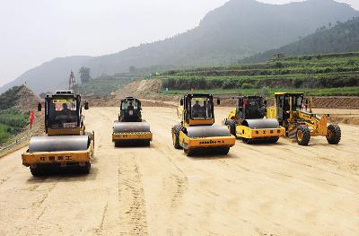 太佳高速公路東起太原市尖草坪區,西至晉陜交界佳縣黃河大橋,穿越太原、忻州、呂梁3市,全長210公里,投資估算133.3億元,預計2010年底前通車。圖為8月5日,高速公路正在建設中。