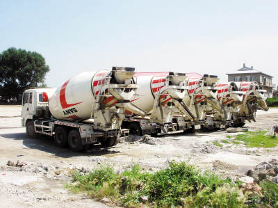 4日11日,在弘業(yè)公司看到,5臺三一重工牌的混凝土攪拌車停在一旁,其中兩臺車因清罐出現(xiàn)故障而裝滿了凝固的混凝土,還有一臺車因發(fā)動機故障停在空地上。