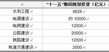 表1 主要基礎設施行業“十一五”期間規劃投資額