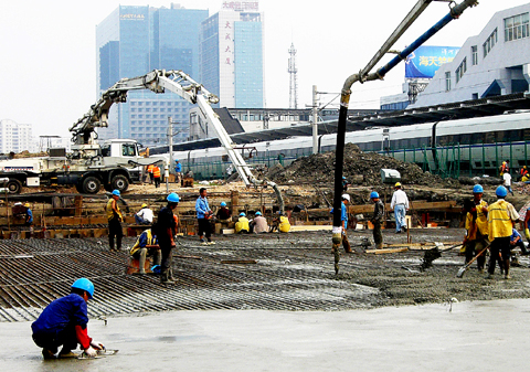 近日,繼不久前完成地鐵2號線交叉段大體積混凝土筏板施工后,中國鐵建中鐵二十四局集團上海公司施工人員再接再厲,經過連續35個小時的奮戰,又完成了滬寧城際鐵路與常州市地鐵1號線交叉段大體積混凝土筏板澆筑施工,一次澆筑混凝土總方量達到1595方。為了確保整個澆筑施工的圓滿完成,施工單位周密安排,精心組織,對原材料、機具設備及施工工序進行嚴格控制。全體施工人員密切配合,晝夜奮戰。做到責任到人,嚴格把關,確保了施工質量和整個混凝土澆筑施工的順利完成,攻克了滬寧城際鐵路又一個施工難關,為今后常州地鐵正常施工創造了良好的條件。