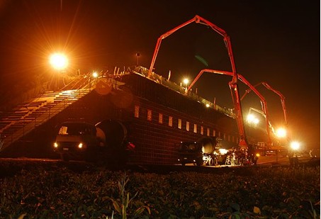 經(jīng)過近300名員工約20個小時緊張有序的奮戰(zhàn),共澆注混凝土約1500方,確保京滬高鐵澮河北壩現(xiàn)澆梁成功澆筑。