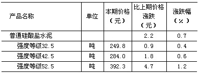 國家統計局網站9月14日消息,國家統計局公布的部分重點企業主要工業品出廠價格變動情況顯示,9月10日,水泥產品價格較上個周期(8月20日)小幅上漲。具體如下: