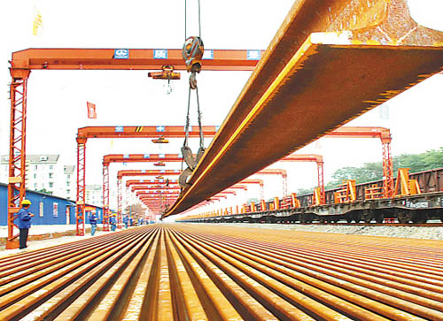 京滬高速鐵路南京段工程進入關鍵的超長軌鋪設階段。國慶期間,建設者放棄休假,連續奮戰,首批50根、單根長達500米的超長鐵軌,已由特制的專列運抵仙林軌排基地。這些超長鐵軌將首次用于京滬高速、滬漢蓉和滬寧城際高速鐵路上。