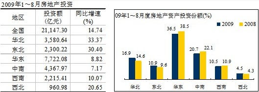華東、中南地區(qū)占全國房地產(chǎn)投資比重有所下降,分別下降了約2個百分點(diǎn);東北地區(qū)略有上升,西南、西北地區(qū)基本與去年持平。
