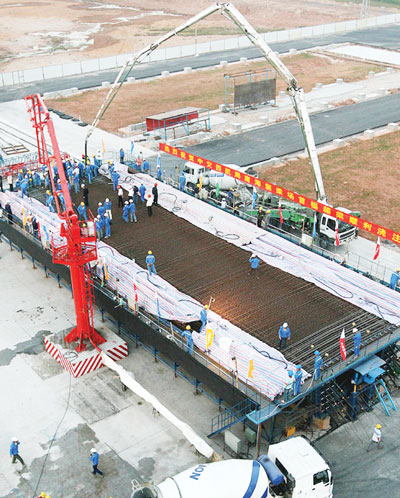 昨日,國家“十一五”規劃重點項目貴廣鐵路在位于丹灶鎮的南海梁場澆筑全線路的首榀預制箱梁。