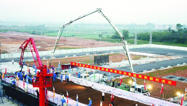 5日下午5時,在中國交通建設四航局貴廣鐵路工程二項目經理部的南海制梁場,貴廣鐵路全線首道箱梁正式開始澆注。6個小時后,澆注順利完成。