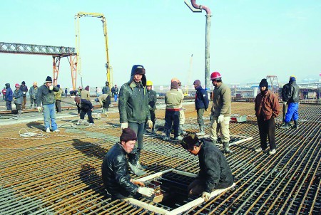 為了取得本次混凝土澆筑成功,項目部組織349名工人進(jìn)行施工,投入泵車6臺,同時聯(lián)合山東路橋、青島路橋共4臺拌合站進(jìn)行集體拌料,22輛混凝土罐車按照施工需要進(jìn)行混凝土輸送,以確保每小時有180-200立方米混凝土輸送入模板,24小時之內(nèi)結(jié)束澆筑。專家表示,根據(jù)目前的情況,澆筑很順利,到今天早上6時多就能完工。