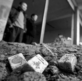 現(xiàn)場肇事車所在公司派來的挖掘機正在處理,王友全的家人也忙著將傾倒屋內(nèi)的混凝土清出去。隨著挖掘機的操作,一根根殘斷的木板被翻出來,這些就是被砸爛的麻將桌。混凝土中不時還清出一塊塊麻將牌,這讓圍觀居民唏噓不已,“太險了,幸虧他們跑得快,不然準(zhǔn)有人要沒命。”廖先生說。