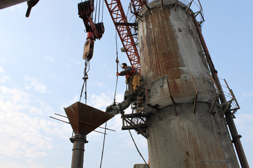 象山港大橋北主塔群樁基礎(chǔ)灌注樁共有41根,第一根基礎(chǔ)灌注樁于2009年10月24日澆筑,最后一根38#樁灌注樁于2010年1月30日21時許澆筑,歷時三個月。施工中,中交二公局針對大橋設(shè)計特點,先后攻克了北主塔深水鋼護筒插打和鉆孔平臺搭建,取得了多個階段性勝利,高速、安全、優(yōu)質(zhì)地完成了41根超長大口徑變截面樁基任務(wù),創(chuàng)下了國內(nèi)超長、大口徑變截面樁基施工紀錄,為大橋建設(shè)整體推進打下了堅實基礎(chǔ)。