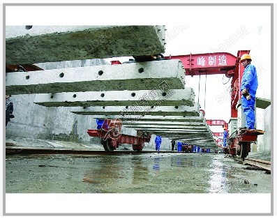在輕軌1號線木瀆站敞開段看到,輕軌鋪軌不同于高鐵鋪軌和一般鐵路的鋪軌,工人們先將兩根各25米長的基本鋼軌固定在一排條石上,預制成一幅軌排。然后,在兩架龍門吊的拖動下,寬1435毫米、重12噸多的軌排慢慢進入道床內,準確落位。照此工序,第二幅、第三幅、第四幅軌排連在一起,一步步由敞開處向地下延伸。“軌排就位后進行軌高等的調整,以100米左右的長度為起調基準,也就是4幅軌排一調,調整過程需3-4小時,然后澆混凝土做整體道床,等混凝土強度上來后,再進行無縫焊軌,將鋼軌固定,這樣就具備行車條件了。 ”陳光輝說。