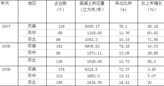 近三年江蘇三大區域混凝土市場發展態勢表 (表1)