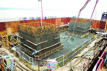 30日中午12時(shí),武漢二七長(zhǎng)江大橋3號(hào)主墩塔座混凝土澆注施工順利完成,這意味著塔身施工首戰(zhàn)告捷。據(jù)承建單位中交二航局介紹,3號(hào)主墩高209米,由塔座、下塔柱、中塔柱、上塔柱、塔頂裝飾段及下橫梁等部分組成。塔座為棱柱體結(jié)構(gòu),高3米,本次澆注施工歷時(shí)38 個(gè)小時(shí), 澆注混凝土2800立方米。下一步將轉(zhuǎn)入下塔柱施工階段。