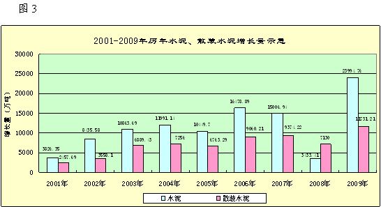 2009年我國水泥生產(chǎn)行業(yè)顯現(xiàn)出3個“歷史之最”:一是水泥市場需求達(dá)到歷史最高水平。全國水泥產(chǎn)量達(dá)16.28億噸,比2008年同期13.88億噸增加了2.4億噸,增長幅度為17.28%,比上年高14.74個百分點,相當(dāng)于世界水泥產(chǎn)量排名第二和第三的國家印度(1.75億噸)、美國(0.81億噸)的年產(chǎn)量之和。二是水泥生產(chǎn)行業(yè)投資規(guī)模達(dá)歷史最高水平。全年投資額達(dá)1700億元,相當(dāng)于“十五”期間投資的總額,接近于“十一五”前3年投資的總和。三是水泥生產(chǎn)行業(yè)年利潤創(chuàng)歷史最高水平,全年利潤達(dá)400億元。2009年水泥行業(yè)成為全國最先回暖的產(chǎn)業(yè)之一,行業(yè)的上佳表現(xiàn)超過了所有業(yè)內(nèi)外專家的預(yù)期。