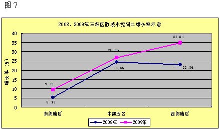 2009年全國農(nóng)村水泥使用量39095.81萬噸,比上年同期增加5508.4萬噸,增長率為16.4%,占全國水泥供應(yīng)量的比重為24%,與上年基本持平。據(jù)測算,2008年與2007年全國農(nóng)村水泥使用量同比增加值為498.09萬噸,增長率為1.51%,而2009年的增加值是上年同比增加值的11.06倍,增長率為上年同比增長率的10.86倍。由此可以看出,2009年全國農(nóng)村水泥的使用量大幅增長。