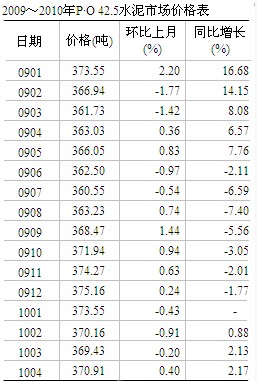 3月寧夏水泥價格不同區(qū)域的不同企業(yè)價格分別下調(diào)30~50元/噸不等,下調(diào)后的銀川市場主流價格P.O 42.5散裝390元/噸。據(jù)了解,此次價格下跌主要原因一是本身市場需求淡季;二是去年投放的新增產(chǎn)能今年才開始有所體現(xiàn)。隨著2010年新增產(chǎn)能的釋放,市場供給壓力將進(jìn)一步增大,在供略過于求的情況下,市場行情下向走勢難以改變。
