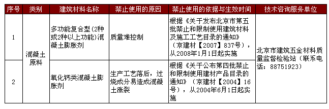 禁止使用的建筑材料(混凝土部分)