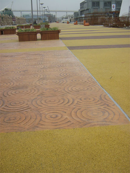 引玉公司在上海世博園中心區的地面鋪裝工程是引玉公司繼奧運工程之后的又一亮點工程,工程包括透水地坪和壓印地坪兩種產品。