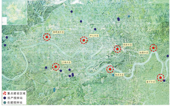 圖2 南寧市攪拌站與城市重點(diǎn)建設(shè)區(qū)域空間分布示意圖