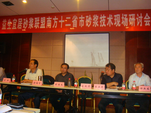 為進一步貫徹落實商務部等六部局《關于在部分城市限期禁止現場攪拌砂漿工作的通知》(商改發[2007]205號)精神,提高預拌砂漿施工技術水平,加大預拌砂漿推廣應用力度,切實推動城區禁止現場攪拌砂漿工作,10月19日,由江西新余益生宜居建材科技有限公司承辦的益生宜居南方十二省市砂漿技術研討會在新余召開。新余市散預辦主任劉國龍、杭州益生宜居聯盟總經理俞錫賢、江蘇南通市散辦主任王躍華、天津市散辦科長楊旭,以及益生宜居南方十二省市聯盟企業等單位代表共計100多人參加了研討會,會議由江西南昌益生宜居建材科技有限公司總經理李衛民主持。