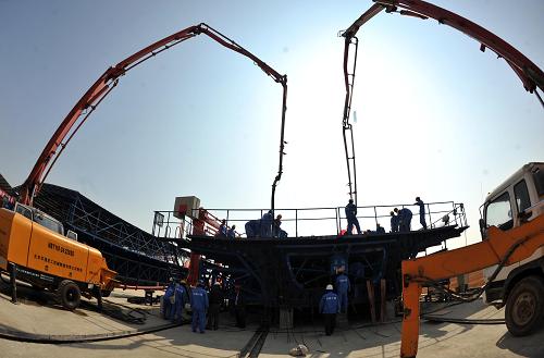 據中國鐵建十四局集團云桂鐵路指揮部指揮長程向華介紹:這種長32米整孔箱梁,高2.60米,頂寬12.2米,砼總量285.9立方米,自重達714.8噸,設計使用壽命100年,施工工藝新穎、結構復雜、技術含量高、制作難度大,是我國自行設計的適合云桂鐵路特點的巨型橋梁。